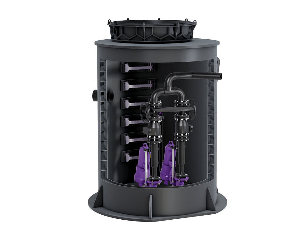 Hebeanlagen werden im Haus installiert. Das bedeutet, sie benötigen dort Platz. Wenn keine Aufstellfläche vorhanden ist, dann ist das ein Fall für eine Pumpstation: Sie kann in einem Hausanschluss-Schacht im Erdreich außerhalb des Gebäudes installiert werden. Auch wenn Regenwasser im Außenbereich getrennt abgeleitet werden soll, kann eine Pumpstation Abhilfe schaffen. Das gilt zum Beispiel für die Entwässerung von größeren Freiflächen. Die Modellvielfalt ist groß: Es gibt Pumpstationen für fäkalienfreies oder fäkalienhaltiges Abwasser, als Einzel- oder Doppelanlage mit unterschiedlichem Leistungsumfang – von kleiner dimensionierten Pumpen fürs private Eigenheim bis hin zu leistungsstarken Pumpen für den gewerblichen Bereich.